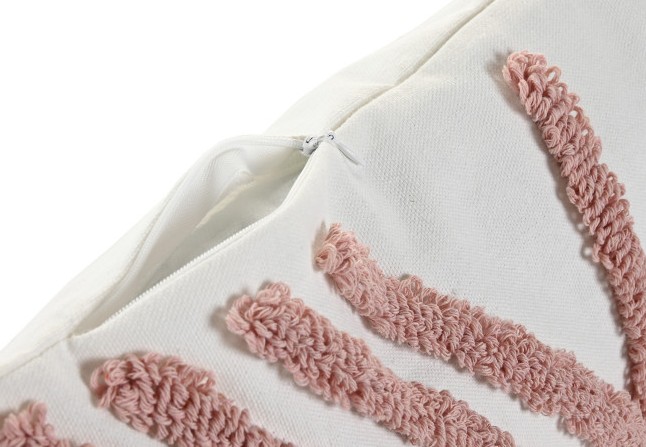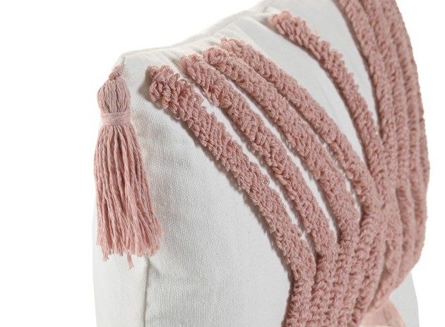 Almofada em poliéster e relevo de riscas cor de rosa, com pompons a dar o toque perfeito. Todas as peças são escolhidas a pensar na melhor, e mais bonita, solução para si.