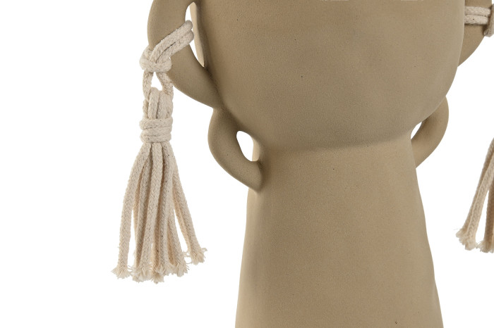 Jarra em dolomite com franjas em tecido. Diferente e original para qualquer divisão da casa. Todas as peças são escolhidas a pensar na melhor, e mais bonita, solução para si.
